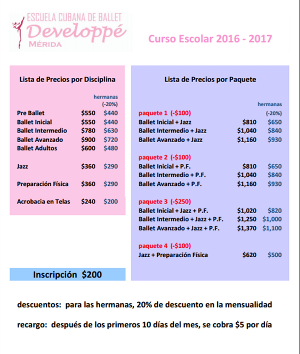 Contamos con 3 disciplinas: Ballet, Jazz y Preparación Física.